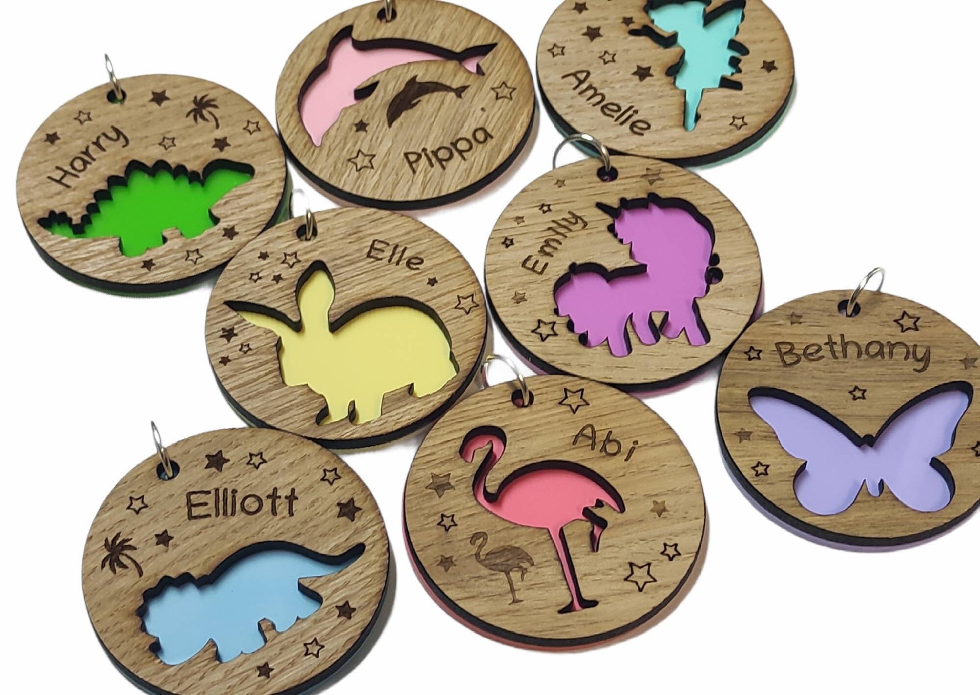 This bright, colourful, personalised children’s laser engraved keychain is the perfect addition to your child’s school bookbags or luggage. Ideal as a party bag filler or children’s gift, it can be customised with a name of up to 10 characters, beautifully engraved on durable oak veneer.