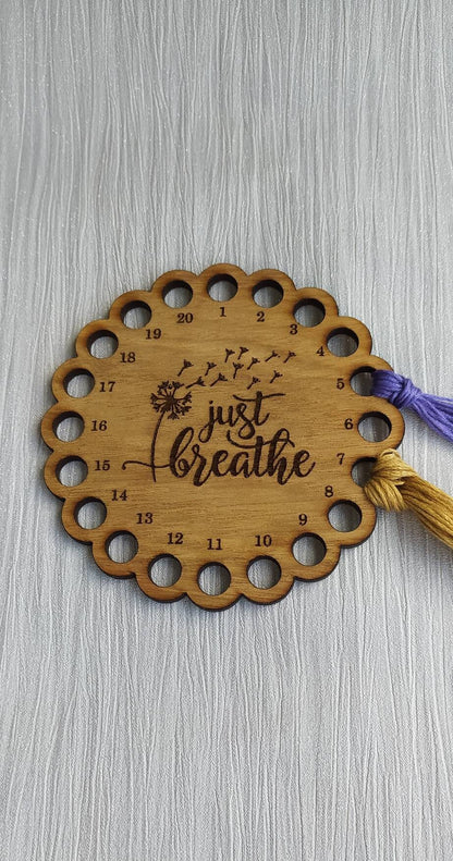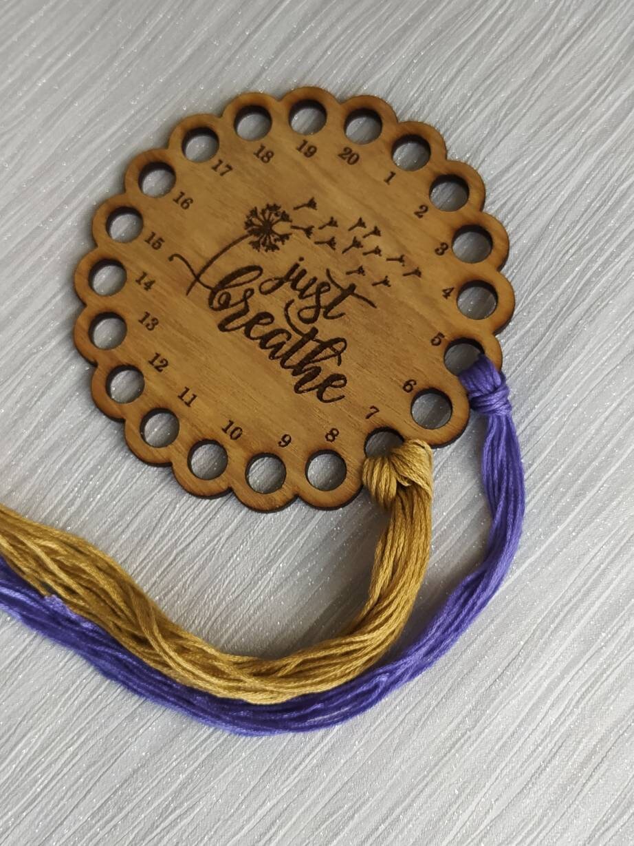 Keep your embroidery thread and floss neat and organised with this beautifully engraved "Just Breathe" thread holder. Made from 4mm oak veneer wood, this stylish cross stitch thread organiser features 20 numbered holes to keep your threads tidy and easy to access. Perfect for both cross stitch for beginners and experienced crafters alike!