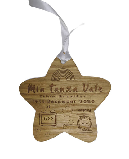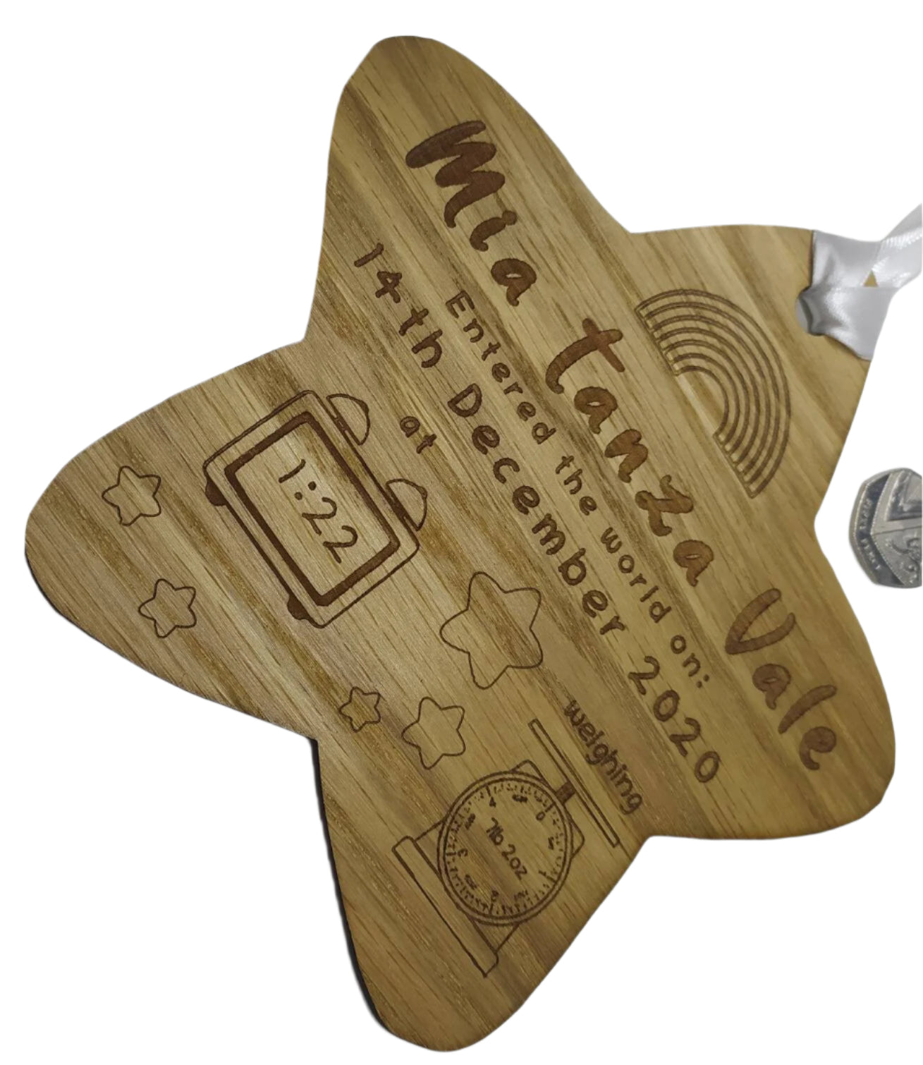 Personalised Oak Veneer Star – Newborn Keepsake Gift