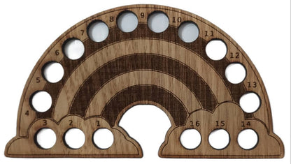 This beautifully engraved rainbow design cross stitch thread holder is crafted from 4mm oak veneer wood. You can personalise it with a laser-engraved message or leave it plain for a classic touch. Perfect for those looking for a cross stitch thread organiser, embroidery thread holder, or a practical yet charming addition to their craft space. This holder features 16 numbered holes to keep your threads neatly organised.